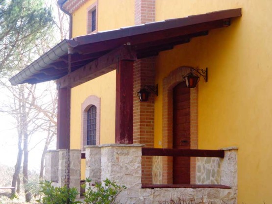 Un altro fabbricato in stile rustico con seminterrato in cemento armato e i sovrastanti due piani in muratura con blocco termico antisismico. Tetto in legno, coppi, intonaco colorato e mattoncini. Il tutto è stato miscelato per ottenere un casale di campagna dalle forme semplici ma tutto da vivere.