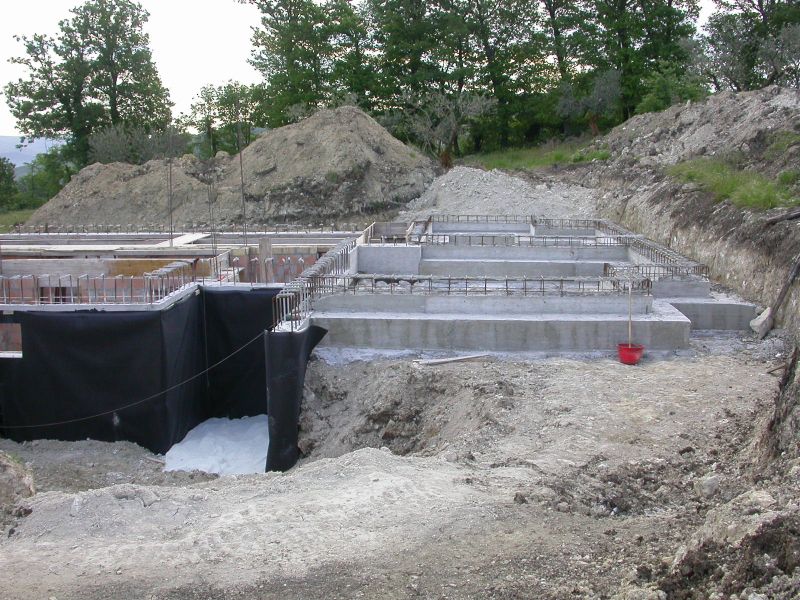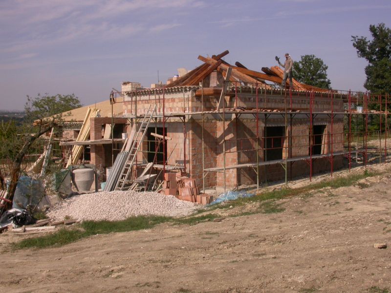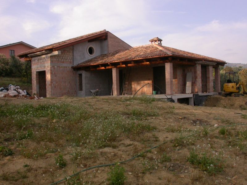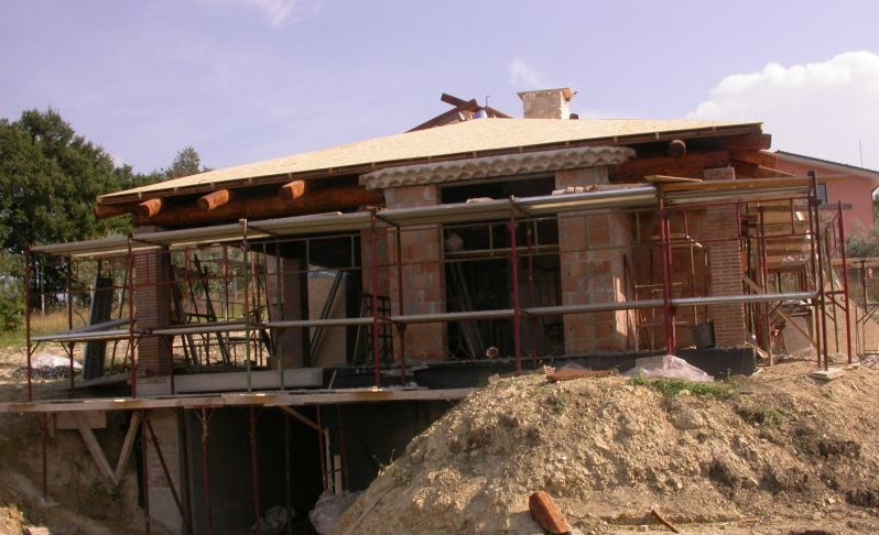 La Ditta Ercoli realizza fabbricati in muratura armata. Sistema costruttivo questo molto valido in zone ad alto grado sismico. Il complesso strutturale prevede l’inserimento nelle armature di elementi metallici in senso verticale e orizzontale. Particolare attenzione viene data alla connessione tra struttura portante verticale in latero-cemento e struttura portante in legno della copertura, in questo caso è in abete uso fiume abbinata ad un cornicione in coppi “romanella” e gronde in rame Coibentazione, ventilazione e coppi di recupero completano il tetto.